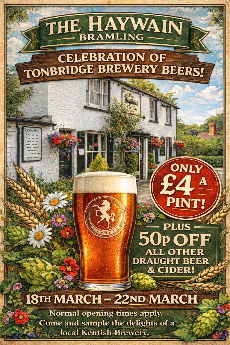The Haywain will be show casing 6 Tonbridge Brewery beers as well as their regular ales. £4.00 a pint.